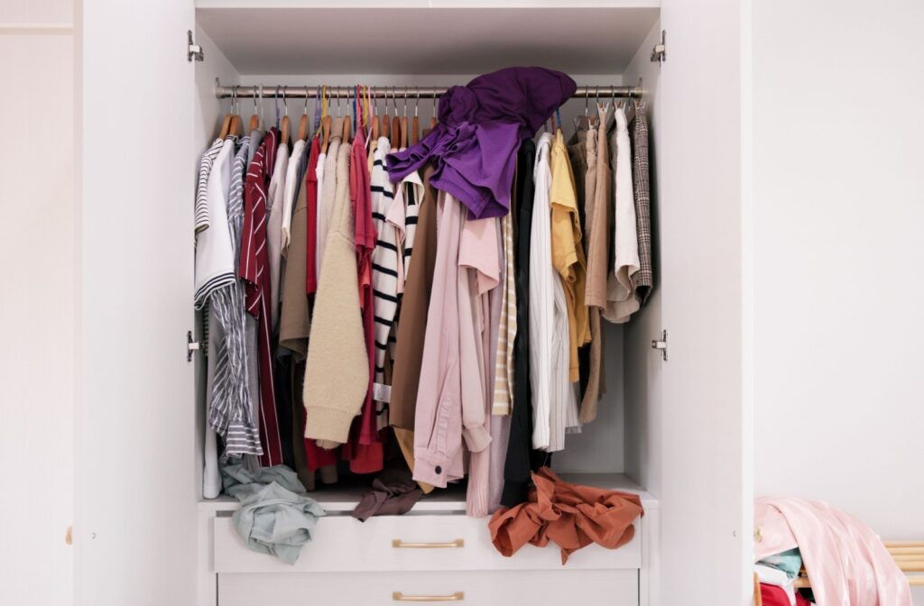 Store all your tops in one section, pants in another, and so on. You can take it a step further and organize by colour. This system lets you see what you have at a glance and helps you put outfits together quickly.